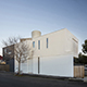 As the site is a narrow 6m wide, triangular slices were cut into the ground (with traversable mesh over) to allow light into the basement. This allows for a Zen-like atmosphere for the underground Judo practice. On the ground floor a triangular light court is cut out of the rectangular cube on the side wall facing the street. It is secured by a perforated metal screen. The screen allows privacy during the daytime with dynamic views out to the street. The perforated patterns frame the street view with a dot-screen like surface filter, vaguely reminiscent of the static of a television screen. At night when the interior lights up to the street, the half-tone dot-screen mediates the image.